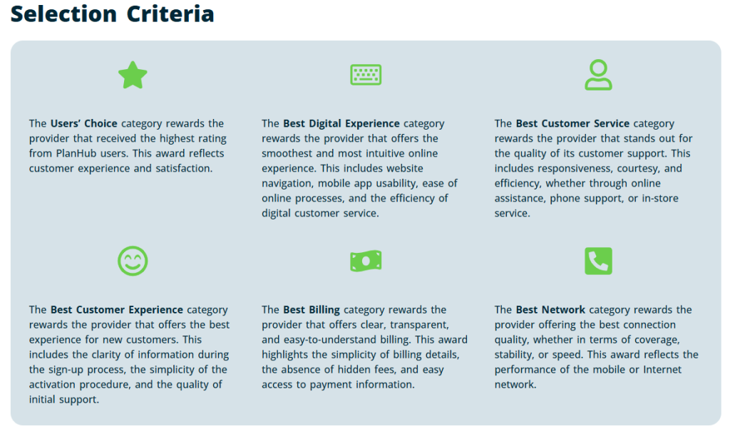 After a year of collecting reviews from Canadians across the country, PlanHub is proud to reveal the winners of the 2026 PlanHub Awards for mobile providers. These results are driven entirely by real user experiences, measured across six key criteria: overall satisfaction, network quality, billing transparency, digital experience, customer service, and onboarding experience.